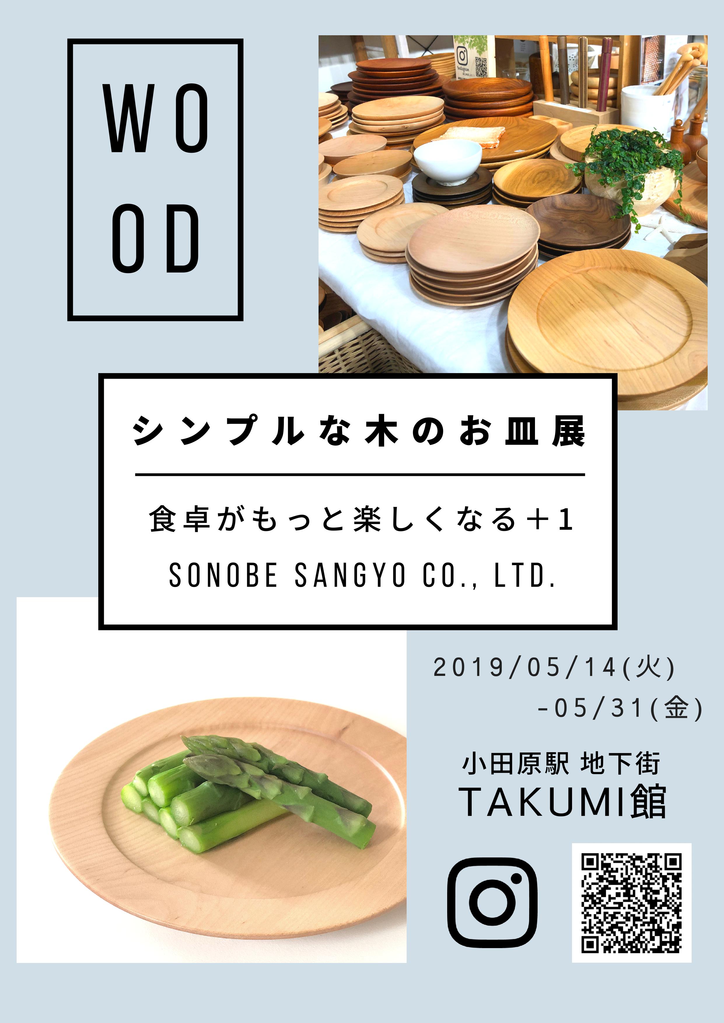 シンプルな木のお皿展(SONOBE SANGYO CO.,LTD.)-2019/5/14~5/31 2019年5月14日 最終更新日時 : 2019年5月14日 takumi-kan 薗部産業による『シンプルな木のお皿展』を開催します。 【期間】5/14(火) - 31(金) 【場所】Gallery Takumi-kan(TAKUMI館内) 【内容】食卓がもっと楽しくなる+1 をサブタイトルに、みなさまの食卓を 盛り上げるお皿を展示/販売を致します -食材の邪魔をせず より美味しく -毎日の食卓を より楽しく -背のびをしない 自分らしい生活を そんなデザインの日常づかいのお皿たち 素材としての機能性をいかした商品を ぜひ直接お手にとってご覧ください 共有:Facebook で共有するにはクリックしてください (新しいウィンドウで開きます)クリックして Twitter で共有 (新しいウィンドウで開きます)クリックして友達にメールでリンクを送信 (新しいウィンドウで開きます)クリックして印刷 (新しいウィンドウで開きます)